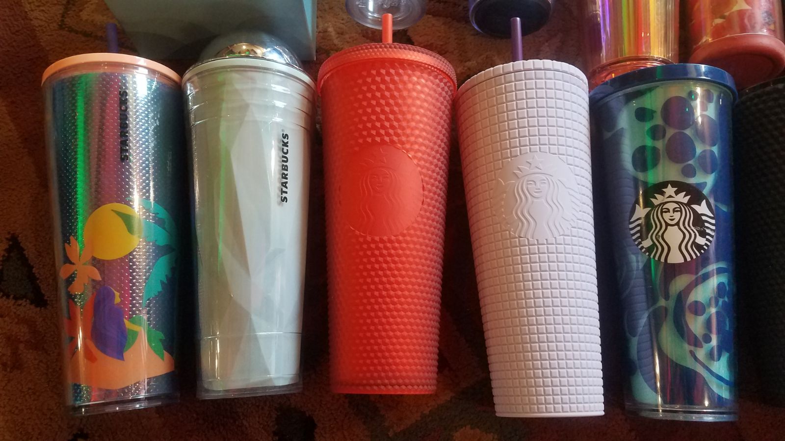 You get all the cups you see here. Most are super old some from 2002 and so on. Black cup has no lid my brother broke my cup, and chip on the bottom. You get a 2 Disney exclusive cups as well. Most are new with tags or without. Only used the black one like 2 times before my brother broke it.